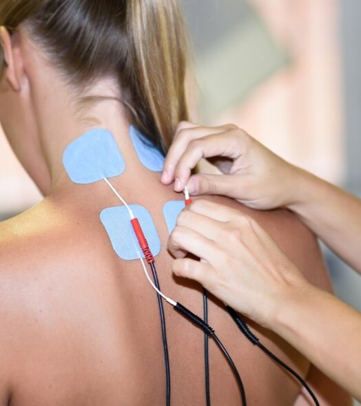 Το ηλεκτρικό ρεύμα διαπερνά το δέρμα μέσω της τοποθέτησης ειδικών ηλεκτροδίων, και είτε δρα ανακουφιστικά (αναλγητικά ρεύματα), είτε δραενισχυτικά (ρεύματα διέγερσης).